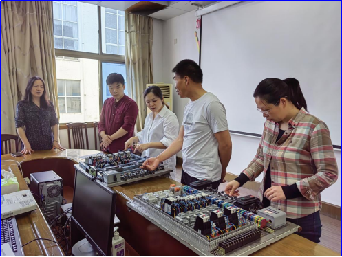 会上,电工电子教研室张著彬老师向大家展示了由教研室自主改造的新电工板,详细介绍了该板较之前老式电工板所具备的优势:1.可以降低部分高价电子元器件的损耗几率,降低耗材使用费用;2.可节省操作时间,便于在有限的实训时间内新增其他教学内容;3.学生可以参照样板,优化工艺,做到布线的“横平竖直”。胡慧主任对教研室自主改造的电工板表示认可。她指出,老师们根据实训项目需要,自主设计并改造实训装置,既能节约耗材成本,又能提高教学效率和实训效果,值得在各工种进行推广。同时,此次改革亦是为了更好地满足工程教育需求,切实提高学生工程实践能力,希望每位教师充分发挥个人专长,积极参与,共同推进电工实训教学改革。