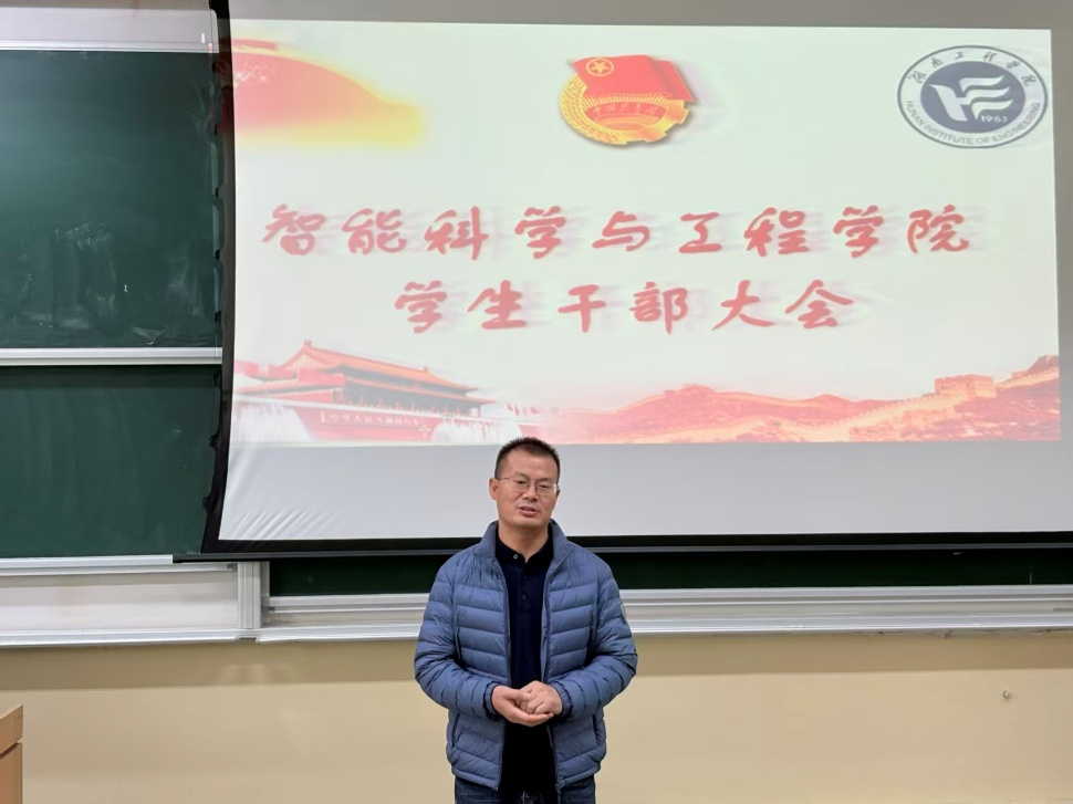 10月27日中午,suncitygroup太阳集团,15vip太阳集团学生干部换届大会顺利召开,学院党委副书记杨文奎出席会议,学院辅导员和全体学生干部参会,学办主任周岳崇主持会议。